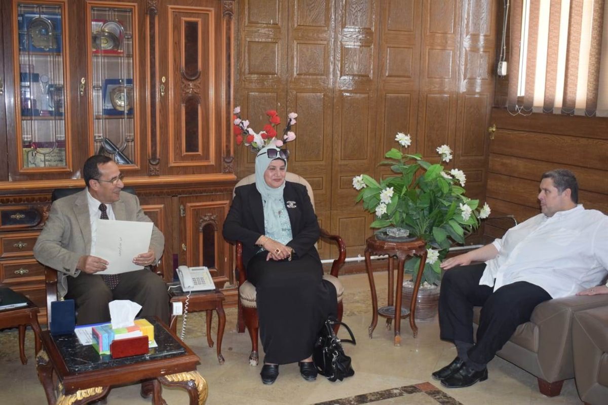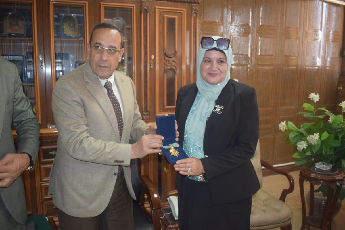 التقى الدكتور محمد عبد الفضيل شوشة في مكتبه اليوم بالأم المثالية الأولى حياة ابراهيم مغنم، حيث تم تسليمها هدية الرئيس بمنحها نوط الكمال من الدرجة الثانية الذي منحه لها رئيس الجمهورية، إلى جانب منحها شيكا وشهادة تقدير من المحافظة.